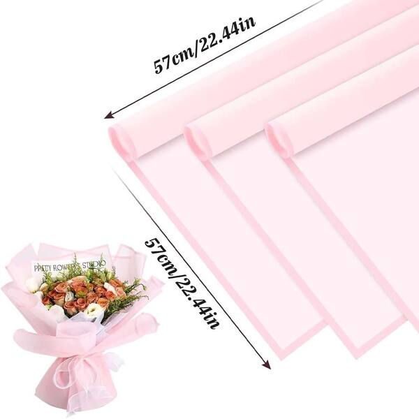20 Sheets Waterproof Floral Bouquet Design Wrapping Paper Pink for Wedding Birthday Gift DIY Projects 22.44 x 22.44 in.
