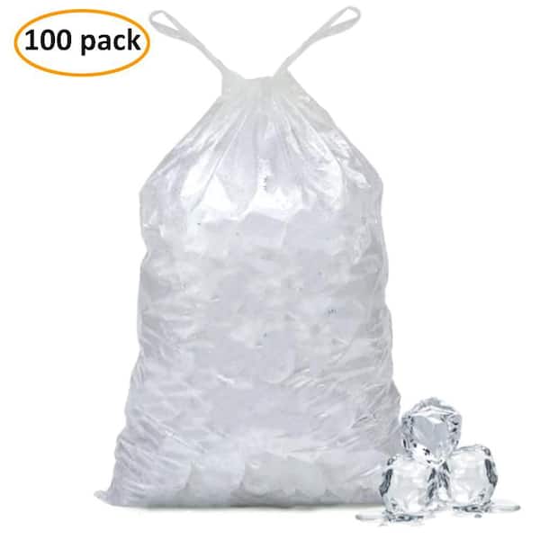 20 lb. 14 x 28 in. Heavy-Duty Plastic Ice Bags with Drawstring 2.8 mil Thickness Clear Blue 100-Pack