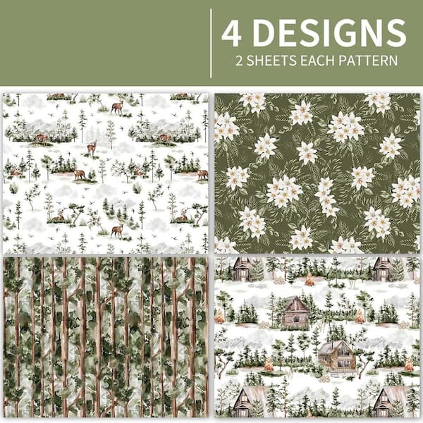 20 x 28 in. Watercolor Holiday Style Gift Wrapping Paper 8 Folded Sheets Christmas Tree Winter Wedding Baby Shower