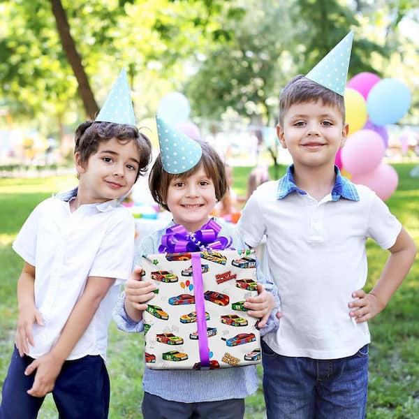 • Vibrant racing cars, flames and checkered flags enhance gifting