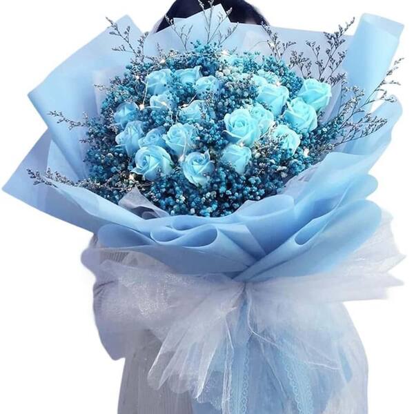 23 x 23 in. Waterproof Double Sided Color Flower Wrapping Paper for DIY and Packaging - Light Blue, 20-Pieces