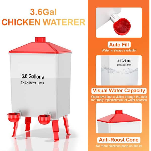 3.6 gal. Chicken Waterer Bucket with Adjustable Foldable Legs and Anti Roost Cone for Clean Coop Environment
