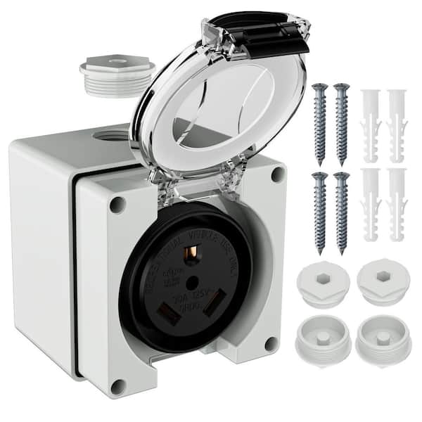 30A 125V NEMA TT-30R RV Power Outlet Box, IP66 Waterproof Dustproof, for RV EV Generator Welding Machine
