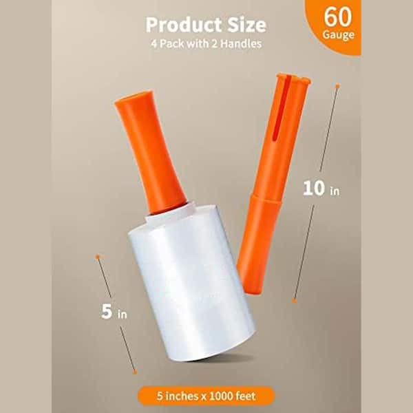 4-Pack Plastic Film Roll with Handles 60 Gauge Thick 5 x 1000 ft. Industrial Stretch Moving Packing Wrapping Shipping