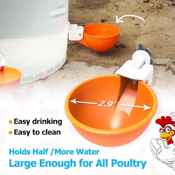 5.79 in. Automatic Chicken Waterer Cups Orange Poultry Feeder Kit for Chicks Ducks Geese Turkeys Rabbits 5 Pack
