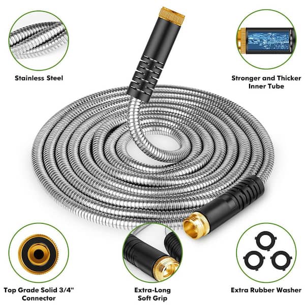 50 ft. Stainless Steel Garden Hose with 10 Function Nozzle, Heavy Duty, Lightweight, No-Kink, Pet Proof