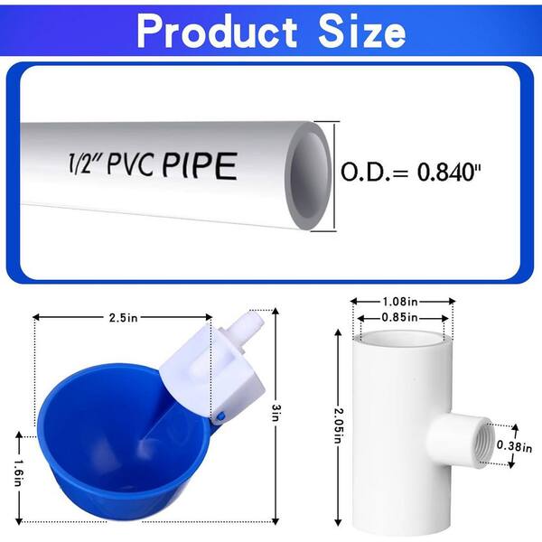 Automatic Chicken Waterer System 49 Pcs with Chicken Water Cups PVC Tee Fittings Float Valve Poultry Feeder Kit