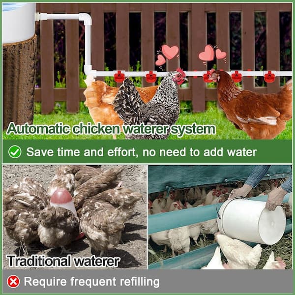 Automatic Chicken Waterer System Complete Set Pipeline Float Valve Chicken Nipples Cups Kit with PVC Pipes Tee Fittings