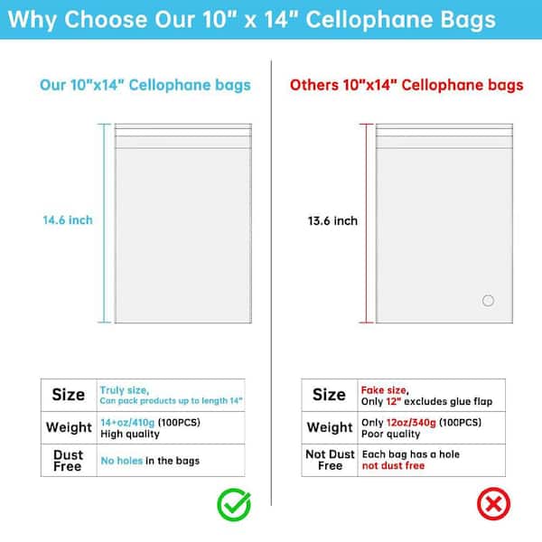 Clear Self-Sealing Cellophane Bags 10 in. x 14 in. OPP Material Resealable Packaging for Shirts 100-Piece