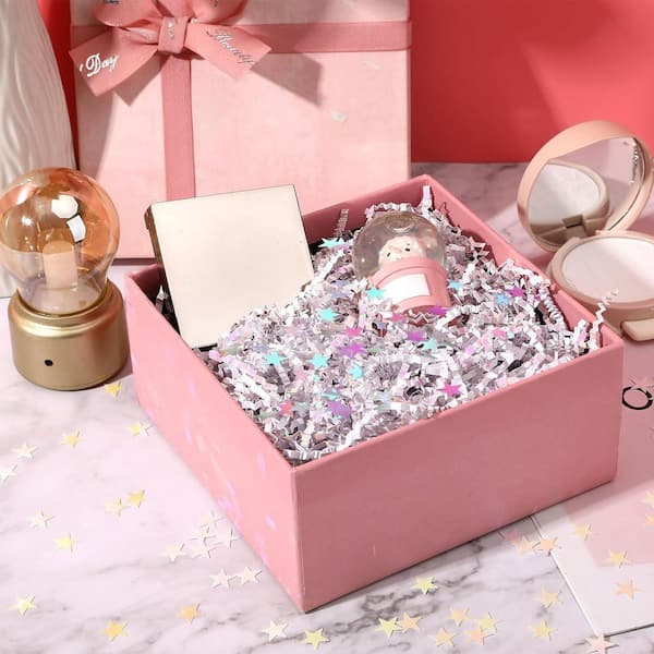 Diamond White Crinkle Cut Paper Shred Filler with Star Confetti for Gift Wrapping Craft DIY Basket Filling 115g
