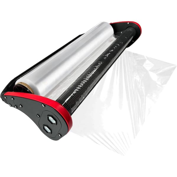 Ergonomic Stretch Film Dispenser 15 in. Single-Hand Use Adjustable Tension Knob Double Roller Design for Tight Wrapping