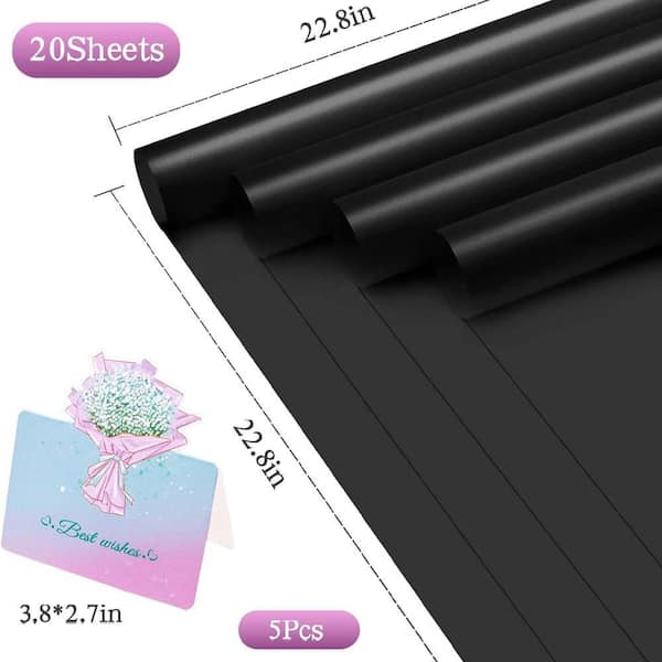 Flower Wrapping Paper Waterproof Floral Sheets with Cards for DIY Craft Florist Packaging 22.8 x 22.8 in. Black