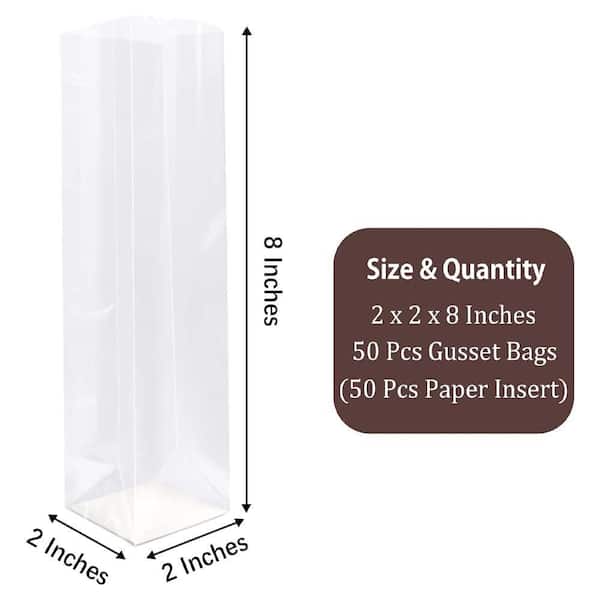 Gusseted Cellophane Bags Flat Bottom with Paper Insert 50-Pieces 2 x 2 x 8 in. for Treats and Bakery Display