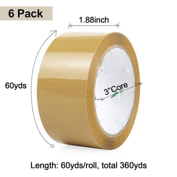 Heavy Duty Brown Packing Tape with Dispenser for Shipping and Packaging, 6 Rolls 2.4 mil 1.88 in. x 60 yds.