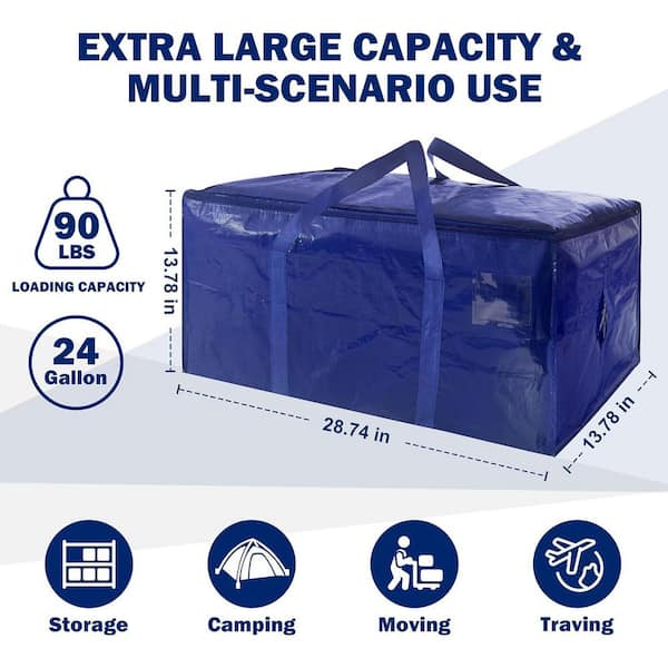 Heavy Duty Large Bags 65 lb. Capacity 29 L x 14 W x 14 H Lightweight PE Fabric Packing Storage Tote 8 Pack, Dark Blue