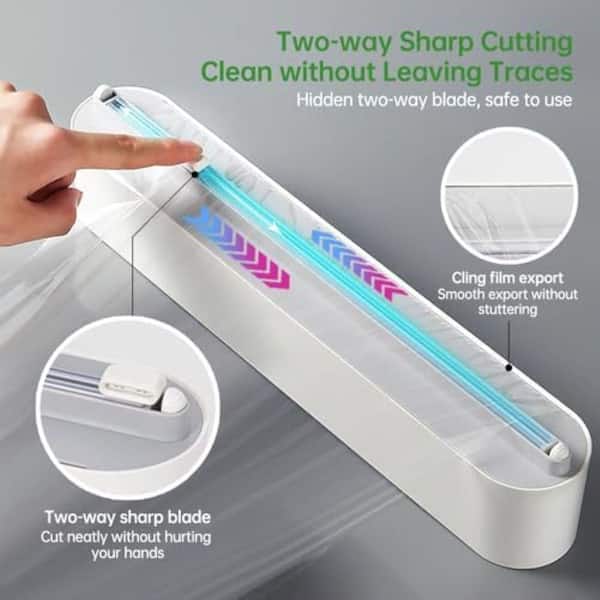 Magnetic Refillable Plastic Wrap Dispenser with Cutter 12-Food Plastic Wrap Roll 2024 Reusable Cling Film Dispenser
