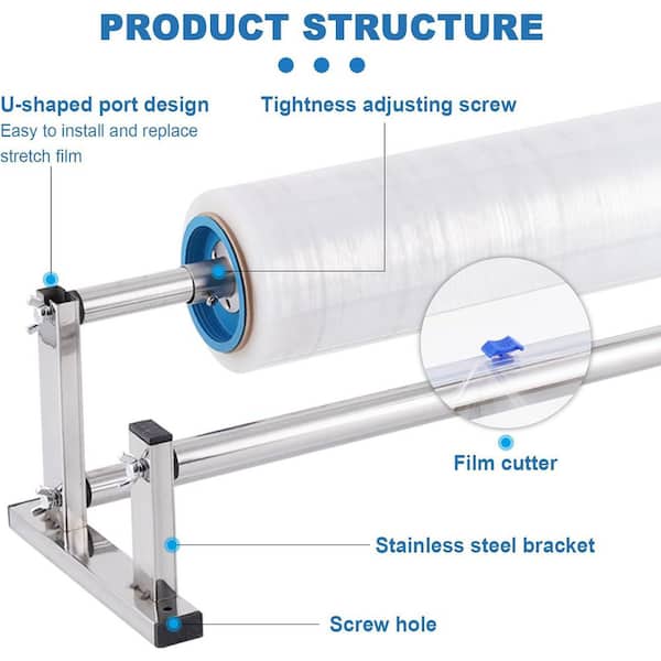 Manual Stretch Film Dispenser Wrapping Machine 4.3 lb. 23.6 x 6.5 x 6.5 in. Stainless Steel Stretch Film Packing Machine