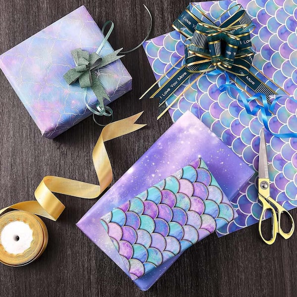 Mermaid Scale Scallop Galaxy Gift Wrapping Paper 4-Styles 12-Sheets 20 x 29 in. for All Occasions
