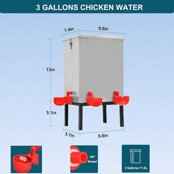 • Holds up to 3 gal, providing sufficient water for 6-10 chickens