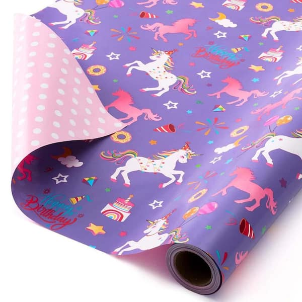 Unicorn Princess Reversible Wrapping Paper Roll 17 x 33 ft. High Quality Material Jumbo Roll for Birthday Party Favor