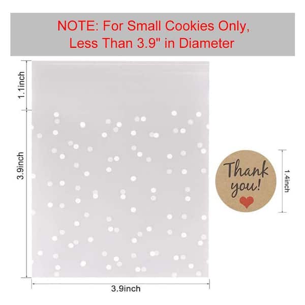 White Polka Dot Self Adhesive Cookie Bags with Thank You Stickers 3.9 x 3.9 OPP Plastic for Gift Giving 100-Piece