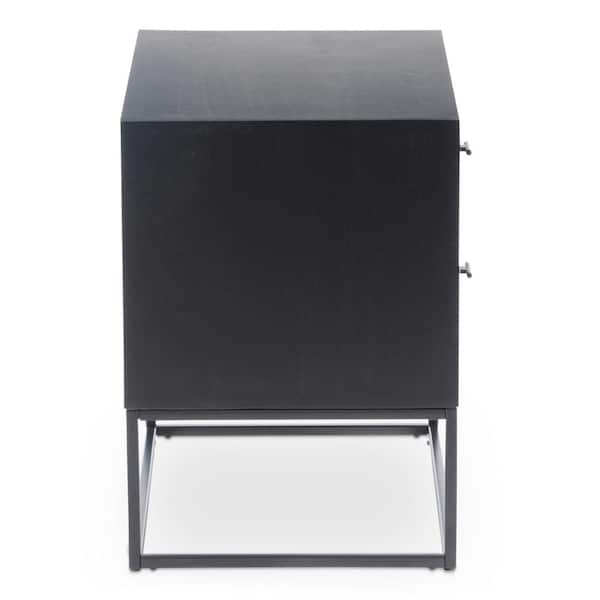 1. Morgan, Black, 2-Drawers, 23.5 in. W Nightstand, Solid Acacia with Iron Legs
