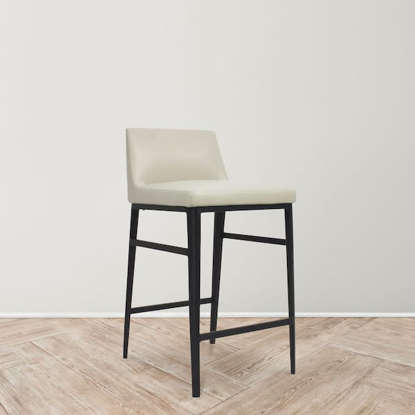 25.5 in. Spencer Beige Contemporary Vegan Leather Counter Stool with Metal Legs