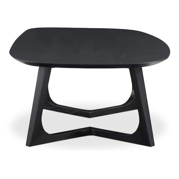 Carina 42 in. Black Rectangle Solid Ash Wood Coffee Table with Sculptural Base