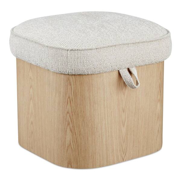 Clarisse Stool, Lift-Top Storage, Ash Veneer Base, Flecked Oatmeal Upholstery, Ash