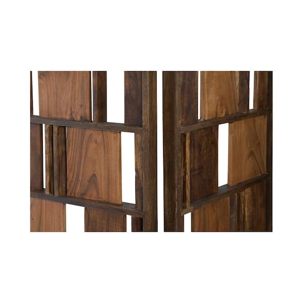 Dashiell 71 in. Brown 3-Panel Room Divider, Solid Acacia Wood with Metal Frame
