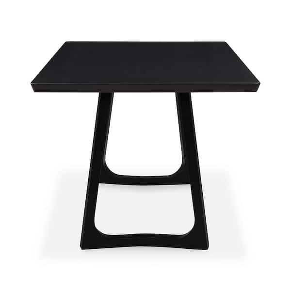 Denver Mid-Century Modern Black Solid White Ash Wood 76 in. Sled Base Rectangular Dining Table, Seats 8