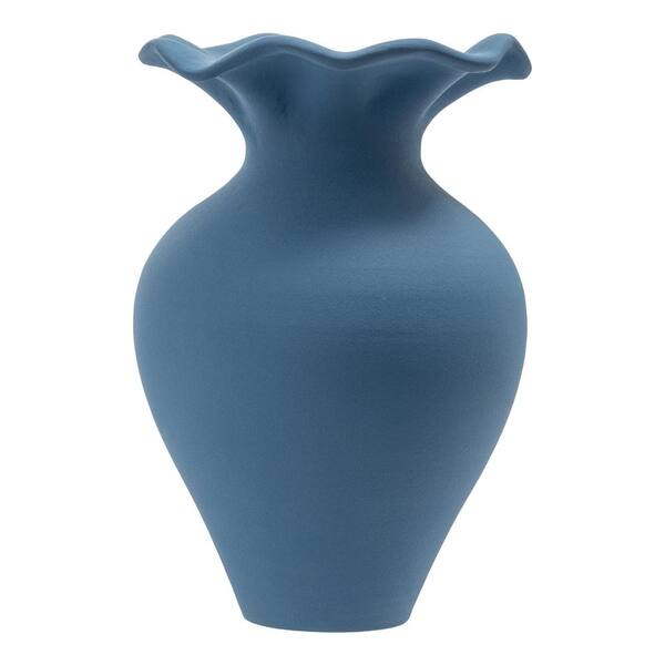Ellison 12.4 in. Blue Terracotta Round Decorative Vase