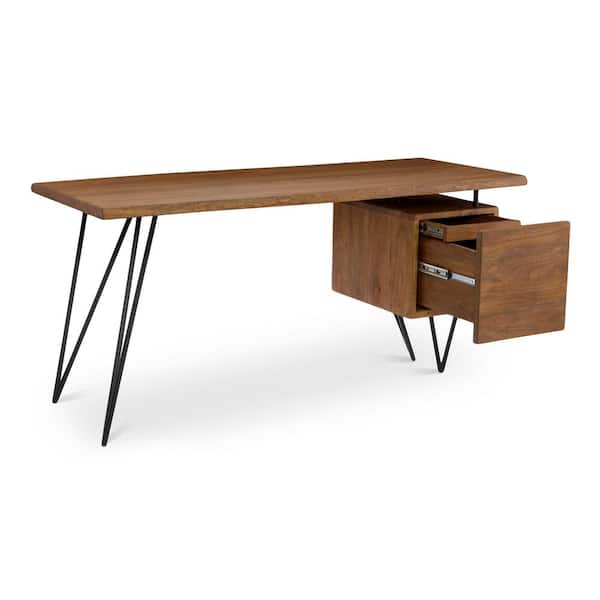 Finian 64 in. Rectangular Light Brown Solid Acacia Desk with 2-Drawer Storage and Iron Hairpin Legs
