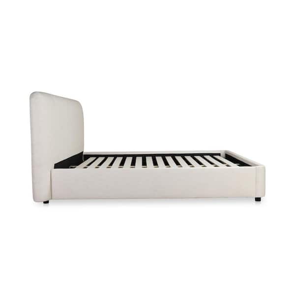 Fletcher Beige Solid Pine Frame Queen Platform Bed with Linen Blend Upholstery and Foam Headboard