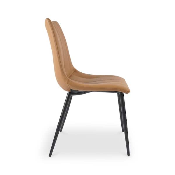 Florian Tan Dining Chair, Vegan Leather Upholstery with Black Steel Legs - (Set of 2)