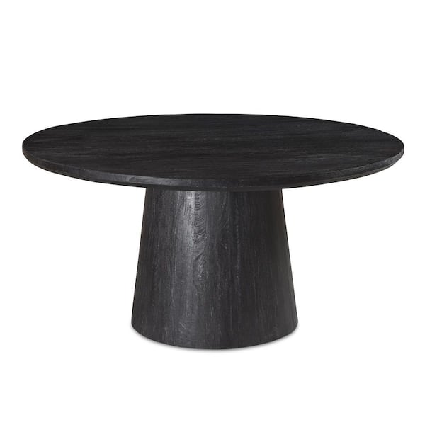 Freya Rustic Black Solid Mango Wood 60 in. Pedestal Base Round Dining Table, (Seats-4)
