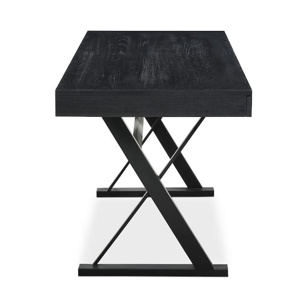 Fynn 63 in. Rectangular Black Solid Ash Desk with 3-Drawer Storage and Sculptural Steel Trestle Base