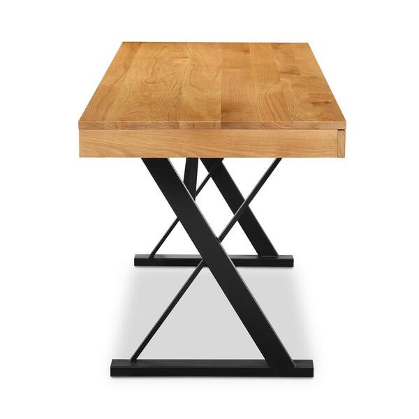 Fynn 63 in. Rectangular Natural Solid White Oak Desk with 3-Drawer Storage and Sculptural Steel Trestle Base
