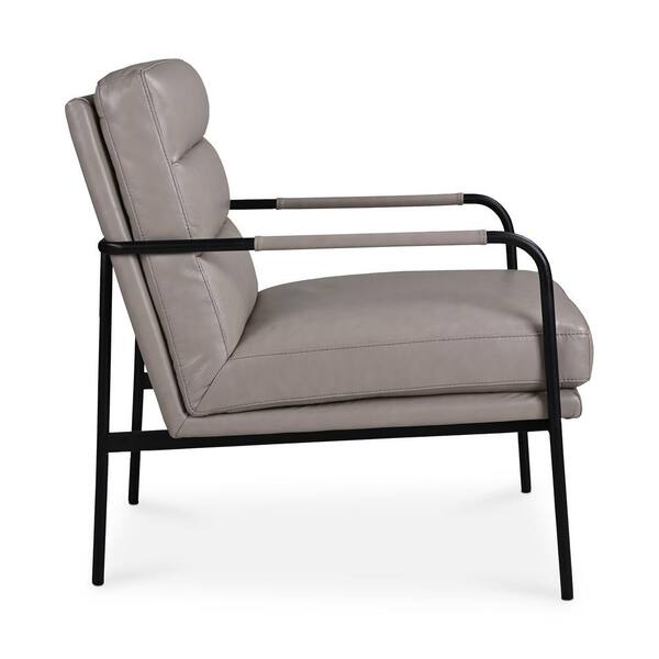Juno Sculptors Clay Grey Top Grain Leather Arm Chair with Minimal Metal Frame