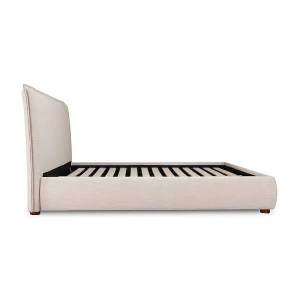 Keaton Beige Solid Pine Frame King Platform Bed with Linen Blend Upholstery and Foam-Padded Headboard