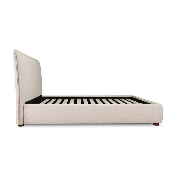 Keaton Beige Solid Pine Frame Queen Platform Bed with Linen Blend Upholstery and Foam Headboard
