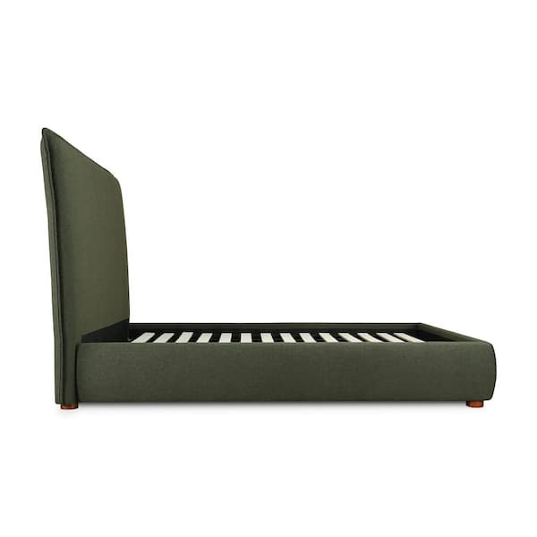 Keaton Deep Forest Green Solid Pine Frame King Platform Bed with Tall Foam Headboard and Linen Blend Upholstery