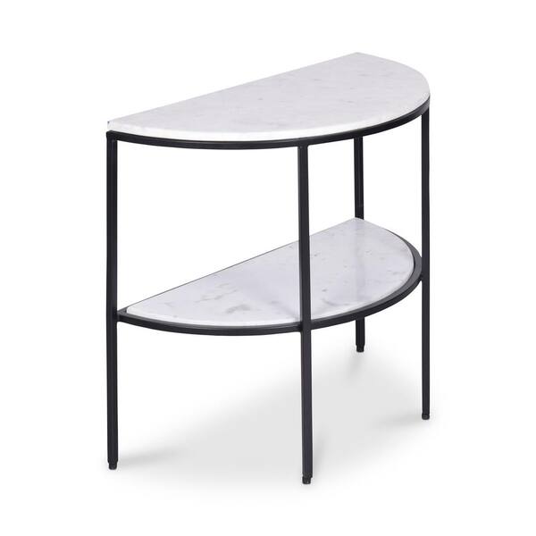 Kestrel 23.5 in. Freeform White Stone Accent Table with Iron Frame and Shelf