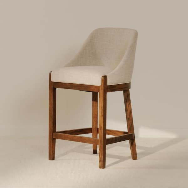 Nadaal Niles 26.5 in. Heather Beige Rustic Solid Oak Frame Counter Stool with Polyester Seat