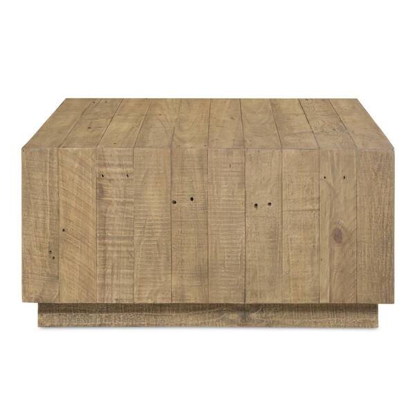 Niall 31.5 in. Rustic Brown Square Reclaimed Pine Wood Coffee Table with Pedestal Base