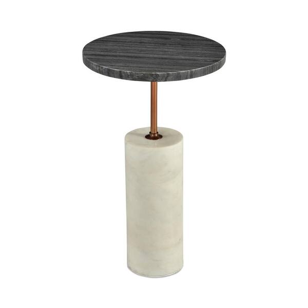 Onyx 12 in. Round Black Stone Accent Table with White Marble Base and Brass Iron Post