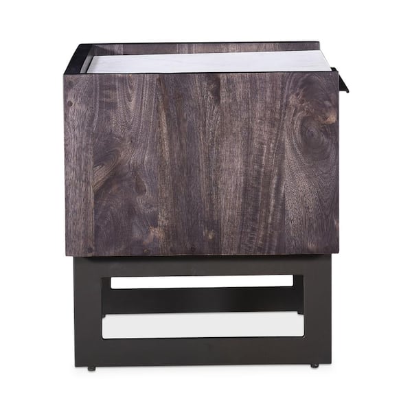 Ozias Charcoal Grey 1-Drawer 22 in. W Nightstand with White Marble Top