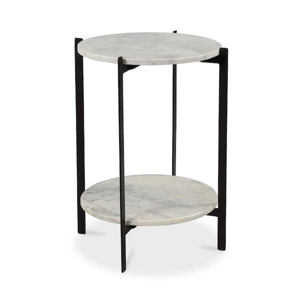 Paxton 18 in. White Marble Round Accent Table with Matte-Black Iron Base