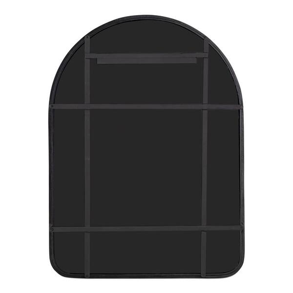 Quill Black 30 in. W x 40 in. H Arched Modern Cast Aluminum Framed Mirror with Channeled Detailing