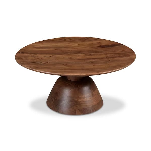 Quincy 30 in. Brown Round Acacia Wood Coffee Table with Walnut Finish
